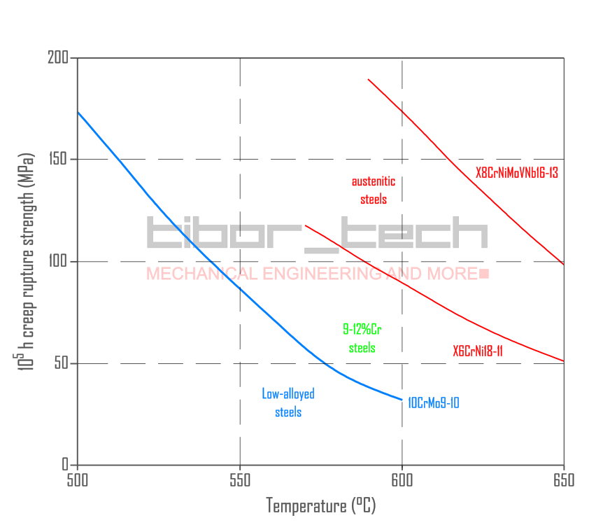 Figure 1 – Creep strength of the boiler materials, early 60s